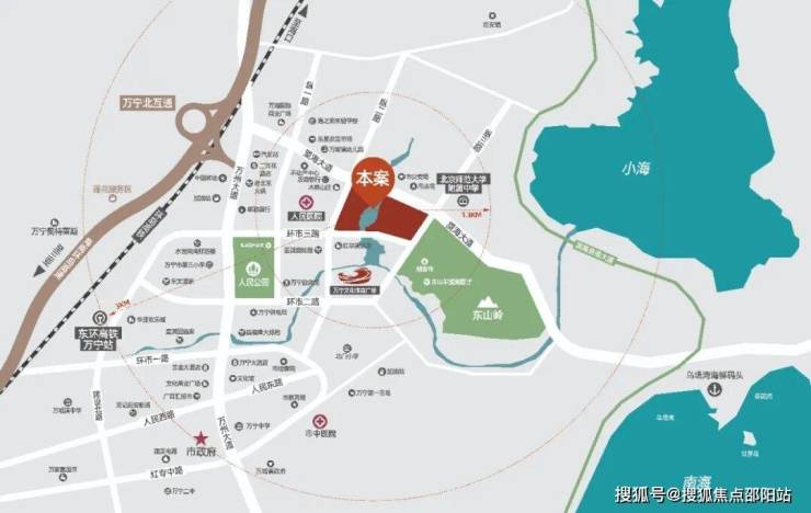 海南万宁市处于海南东部琼南板块,常住人口55万,北距海口市约150公里,动车车程60分钟即可到达;南距三亚市约120公里,动车车程40分钟即可到达。双大·瑞城项目位于万宁市望海大道新城区的行政中心地段,半径3公里车程约10分钟即享全城繁华。