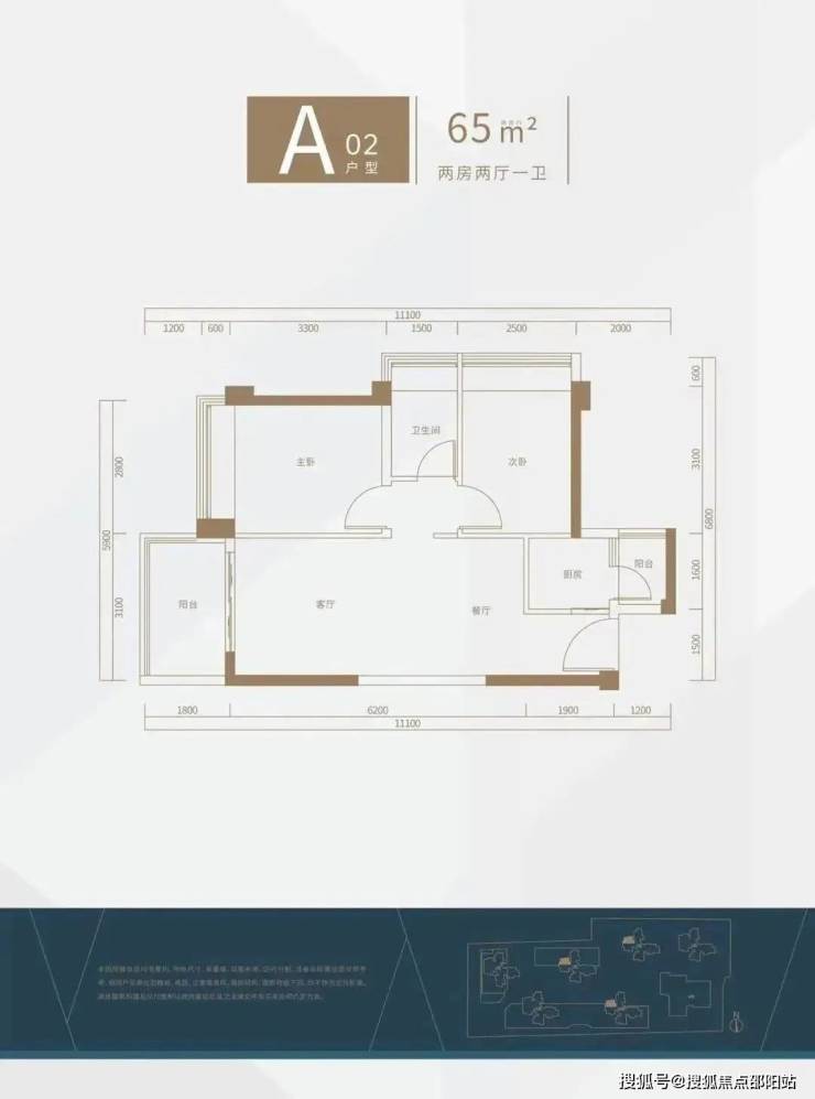 65㎡的2房1卫,其中A1-02、03户型互镜像