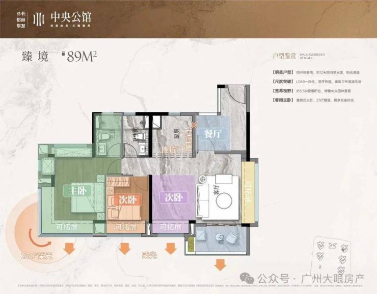 3,改善型买家:追求高得房率、南向采光及滨江景观的置换需求。