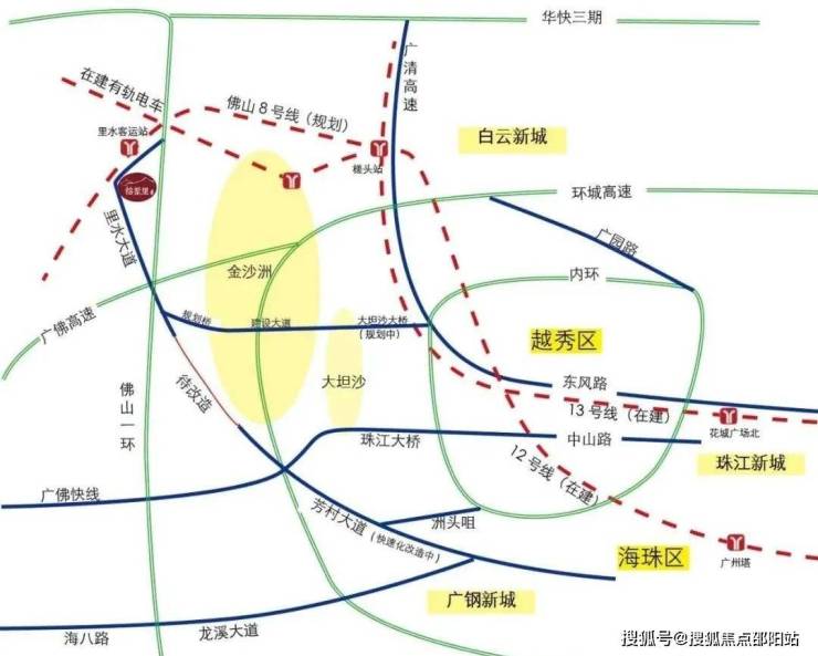 三地铁汇聚,多条公交线路无缝接驳广州地铁6号线浔峰岗站;佛山地铁5、6号线(规划中)、佛山地铁8号线(规划中),最近的站点离项目直线距离800m,8号线不仅与佛山地铁4号线、5号线、6号线相接,而且还将和广州地铁的12号线和13号线牵手对接,无缝连接广佛两地。