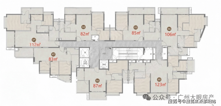 项目的整体货量并不多,总层高25层,3梯7户,主打建面约82-123平三至四房,其中建面约123平四房货量最少,全盘仅23套,虽然项目是新规前地块,但户型整体使用率也在100%以上。