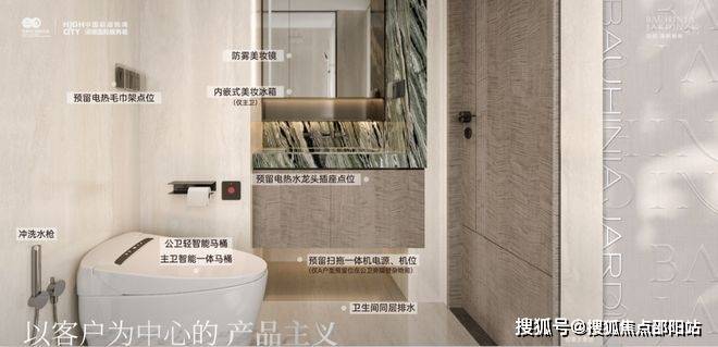 静音专项设计、线形地漏(淋浴间)、同层排水(洗手间)。