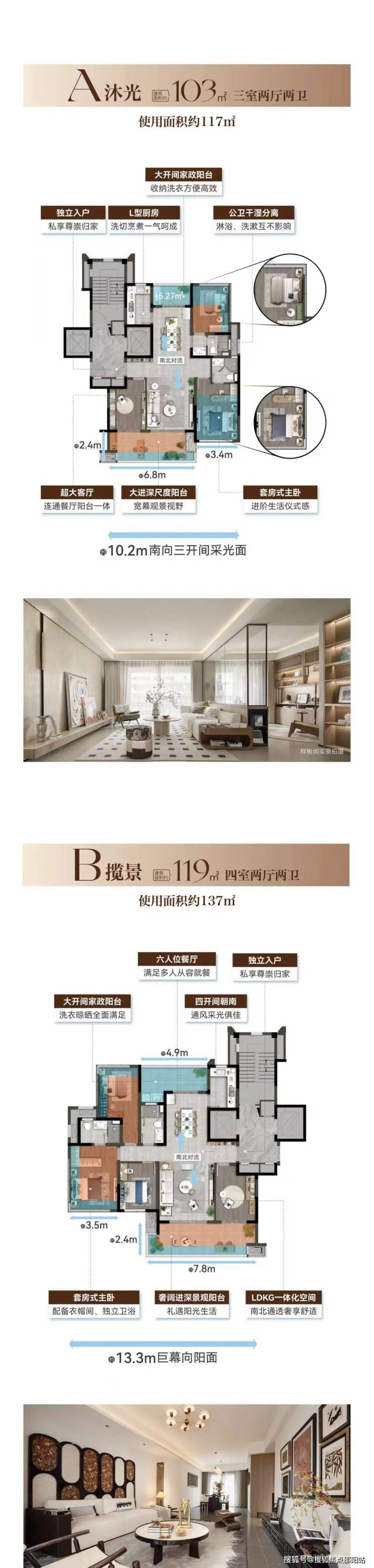 •南北双奢阔观景阳台 引领雅致新生活项目规划建筑面积约103-143㎡改善户型,层高最高约3.05m,南北通透、双景观阳台、南向多面宽,于一方宽境里,满足对阔绰空间与舒适格局的拥享。