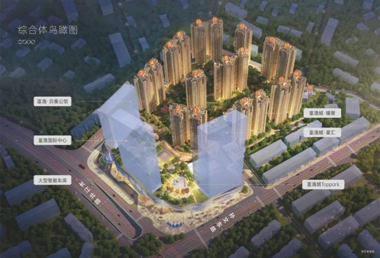 富逸城汇集高端洋房“臻誉”、时尚购物中心“TopPark”、五A写字楼“国际中心”、高端商住公寓“星汇”、花园式公馆“云峯”、以及大型智能车库。