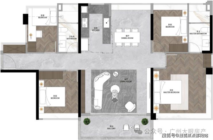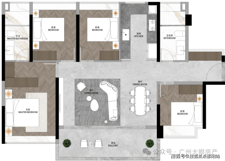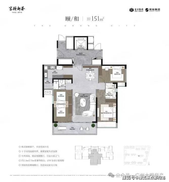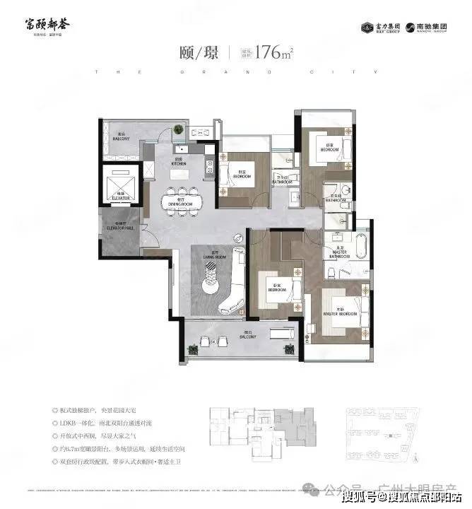 约6.6m宽景阳台,全屋空间通透感强,超22㎡主卧套间,奢阔私享空间