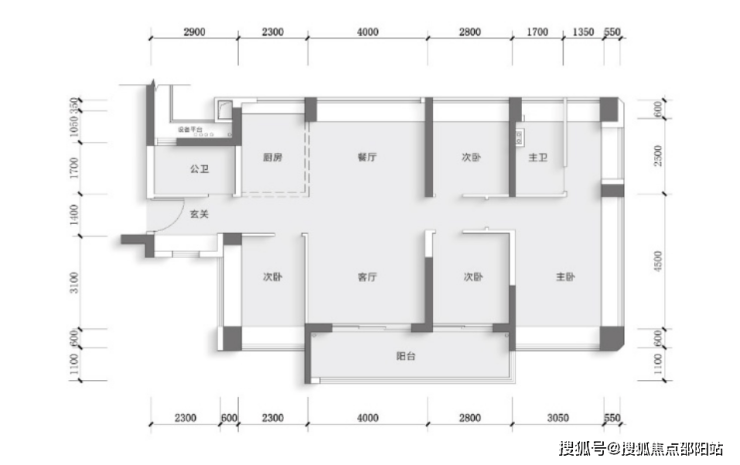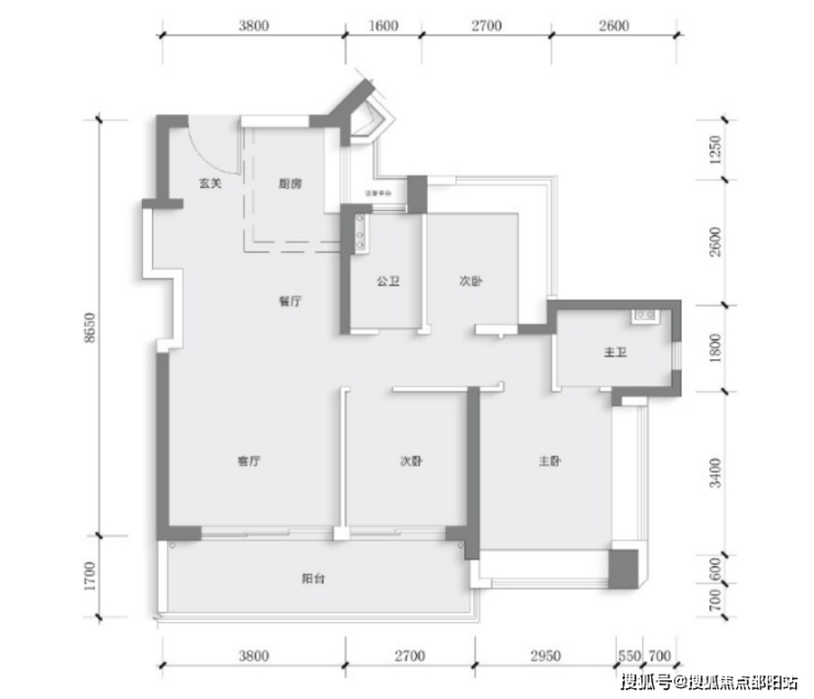 【88㎡3房2厅2卫】:经典的竖厅结构,动静分区。