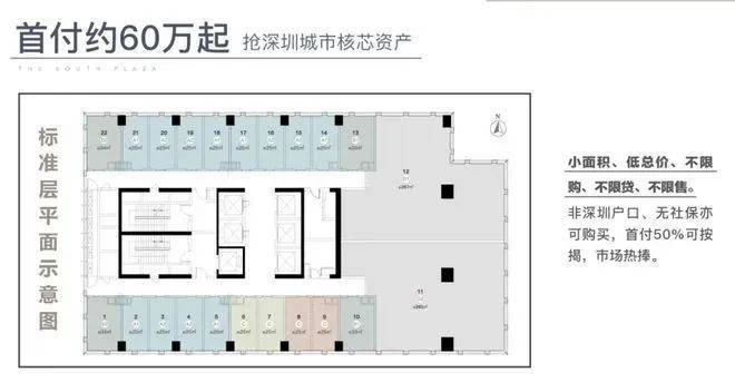 【会见世界的深圳之窗】约180m城市坐标,涵盖首层商业、空中花园等多元功能。建筑面积约25-270㎡云端私域,约4.5m奢阔层高,百变灵动空间。270°大面宽玻璃,直望京基100、荔枝公园,成就堪比纽约中央公园的观景视野。配置星级大堂,近12m挑高,威仪不彰自显。双银Low-E中空玻璃,采用内开启扇设计,同频当代国际建筑美学;6部日立电梯,高效商务体验。
