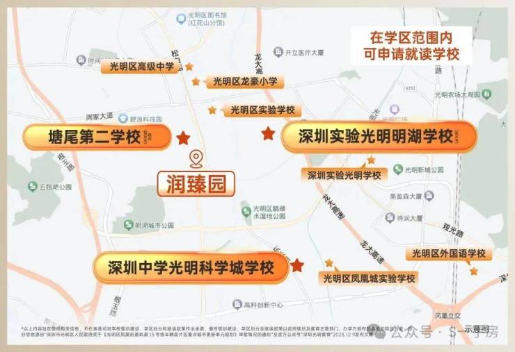 社区内配置幼儿园,西北侧地块为九年一贯制学校(规划中),与项目一路之隔。大城规划3所九年一贯制学校、其中一期学校深圳实验光明明湖学校(暂定名)建设中,项目3公里范围内涵盖深圳中学光明科学城学校、深圳市光明实验学校等。社区配套:约1.5万㎡社区配套(商业街区、公交车首末站、社康中心、老年人日间照料中心、文体活动室、幼儿园、篮球场、羽毛球场、全功能会所等)