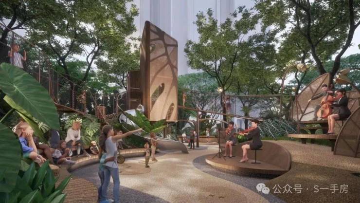 与千篇一律的社区不同,项目将约1500㎡的达尔文营地搬进孩子的日常,打破“自然缺失症”桎梏。通过精心设置大叶植物王国、植物认知区与科普园地,让孩子们能随时随地亲近自然、探索自然。