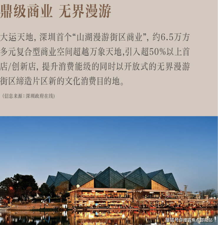 项目自带有1000㎡社区底商,一路之隔就是大运天地,约1.7公里还有星河cocopark,里面有山姆会员商店,算是目前龙岗最高端的商业,距离约4公里还有万科广场,世贸百货,仁恒梦中心等大型商业体,在未来大运枢纽还会打造25万㎡的高端商业体。