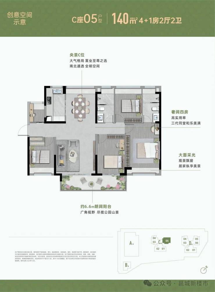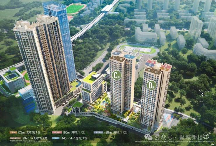 主力户型:72-140㎡2-4+1房