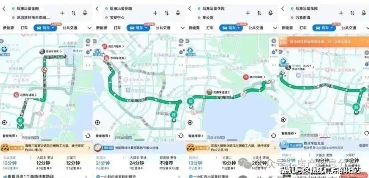 <自驾>:周边分布有多条高速/快速路及区域主干道,如西侧是后海滨路,北侧是滨海大道、南侧是东滨隧道,去往南山科技园13分钟,去往前海、福田、宝中大概在15-20分钟。