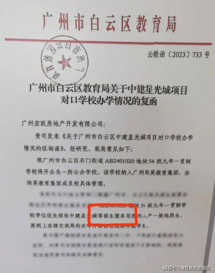 有些朋友可能会了解过这边,特别是了解过中建星光城的朋友,那边的销售会说学校优先他们的业主入读,还会给你看以下的文件,但其实不是的,他们跟你玩起了文字游戏,大家重点看圈起的文字:等招生服务范围,还是人户一致优先为主。