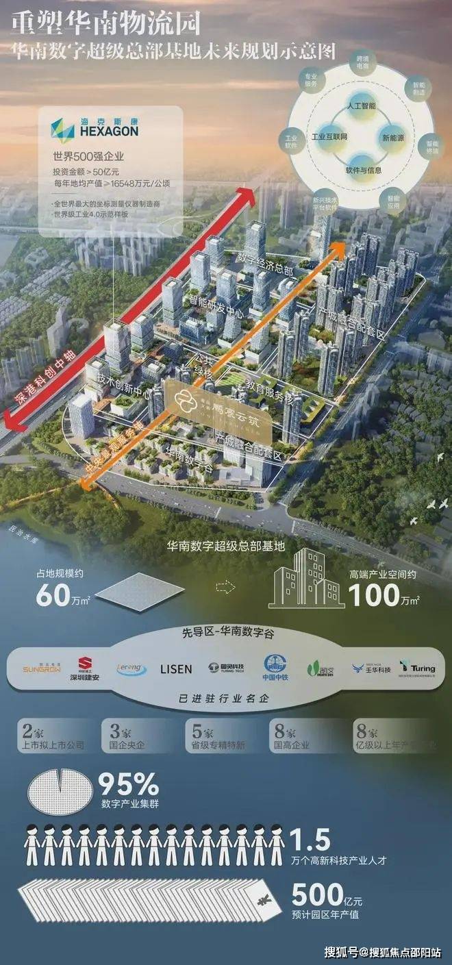 世界500强海克斯康落户华南数字谷,集聚35+龙头名企,打造湾区数智产业集群,数字产业集群度达95%,人才流、资金流、信息流、技术流汇聚融合,驱动板块加速蜕变。
