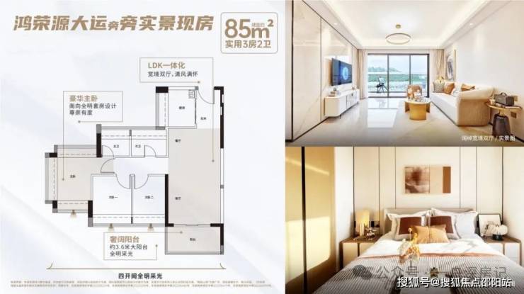 85㎡:全场最赞,具备3.6米全明大阳台!主卧南向,全明套房设计