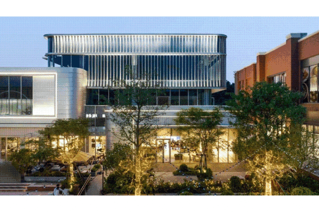 在商业打造上,项目打破了传统商业街区的造型,以流动的线条感创造出新的商业立面,面向城市,焕新城市界面。