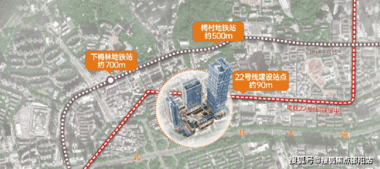 北环大道旁,匹配企业的强昭示性需求,让企业形象始终在前沿。位于22号线(建设中)地铁口,距9号线梅村站约500米、下梅林站约700米,高效通行,便捷办公。