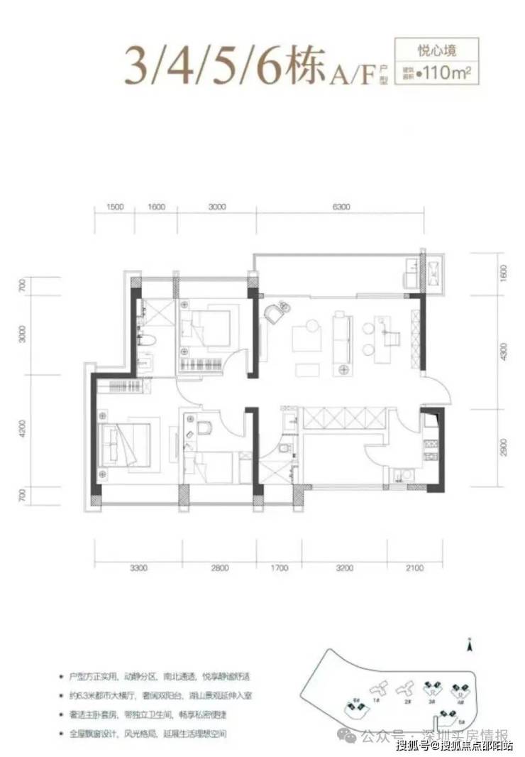 梯户比:1/2栋2梯3户,3/4/5/6栋3梯6户