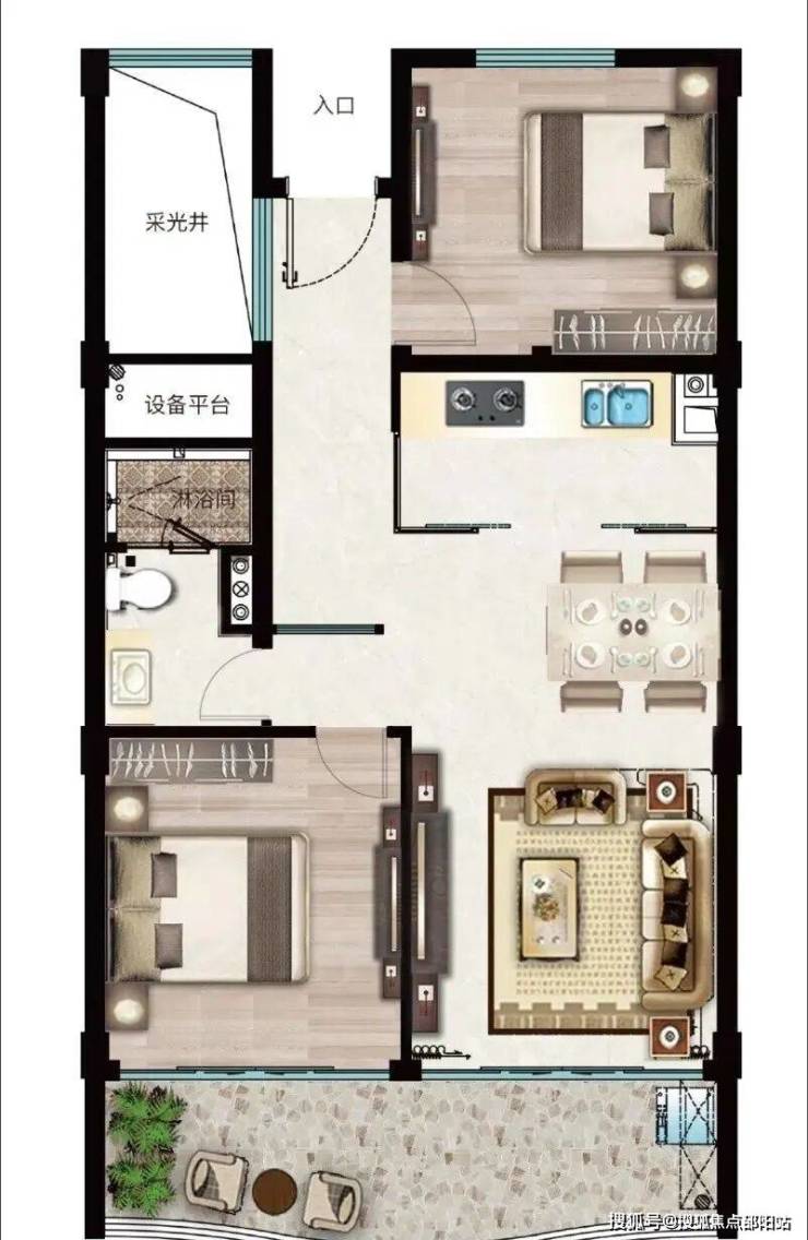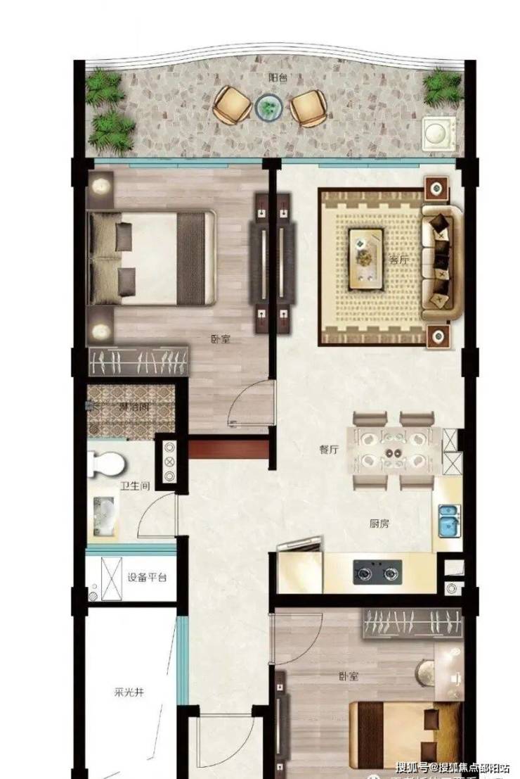 2室2厅1卫户型,拥有入户花园、大面宽景观阳台,天然气入户