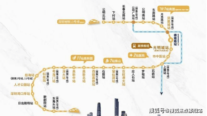 观玥名邸家门口就是13号地铁线“德雅路站”,以前的同观路站已经改名,最高时速100公里,预计2025年开通运营,1站可到光明城站,换乘6号线/光明城高铁站,3站可到石岩,7站到西丽,8站到留仙洞总部基地,11站到南山高新园。