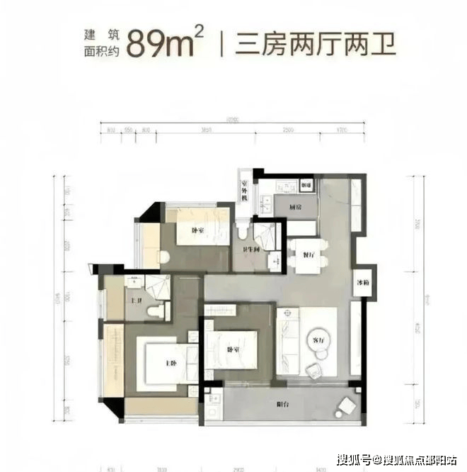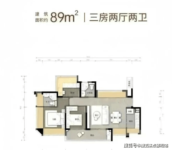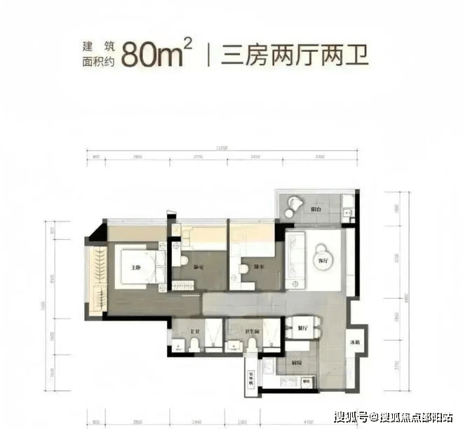 竖厅格局,客厅3.3米开间,LDKB一体化,S墙设计预留冰箱卡槽位,动静分区,分别做到了主卧16.38㎡/次卧8.16㎡/次卧7.84㎡(包含墙体飘窗),U型厨房,卫生间干湿分离,得房率约79.6%(不含赠送),阳台4.95m²东北朝向。套内面积63.98m²+赠送面积11.55m²=实用面积75.53m²,加上赠送面积后得房率94%。
