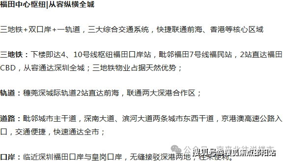 地铁:地铁4号线的交汇站福田口岸站(距离约380米)地铁7号线福民站
