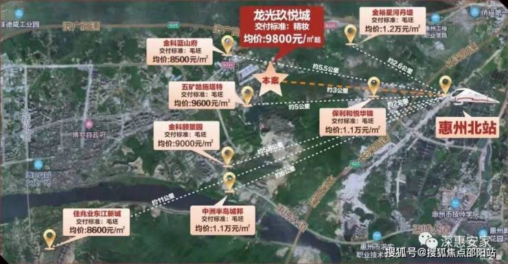 龙光玖悦城项目位于惠州北站新城,博罗商圈与江北CBD环伺,坐拥惠州高铁北站利好,距离惠州高铁北站直线距离约3.4公里,享双城配套与高铁地铁城轨综合枢纽。惠州北站规模仅次于深圳北站,全站面积高达约5万平米,北站新城赣深高铁和广汕高铁全线覆盖,30分钟直达多城生活圈。