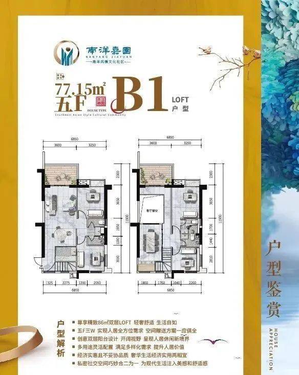 ·B1户型:LOFT,约77平方米,五室两厅三卫,如同宫殿般的奢华,每一处都散发着贵族的气息。