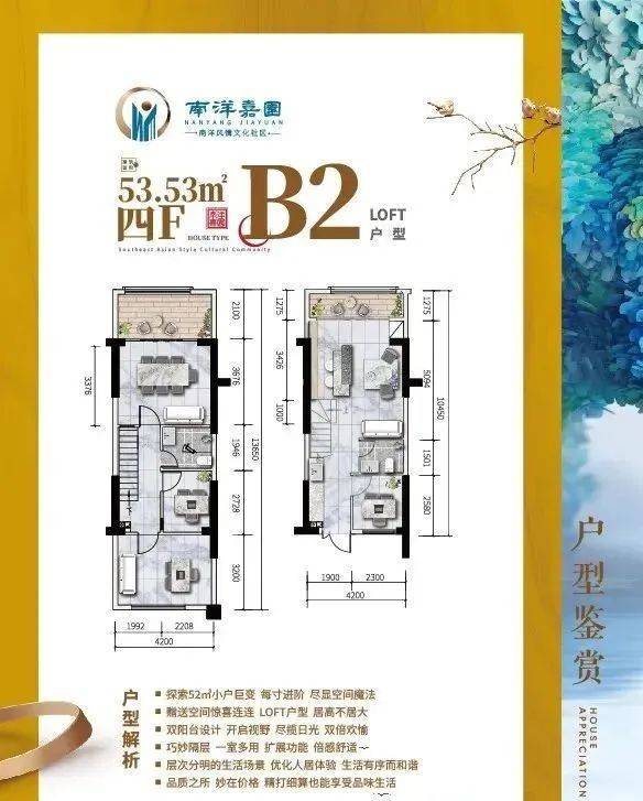 ·B2户型:LOFT,约53平方米,四室两厅两卫,空间的雕塑家,雕刻出生活的精致。
