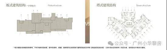 ×塔楼:混合朝向,并非户户朝南,户型间存在遮挡,容易产生对视,室内空气流线差,换气效果相对较差。