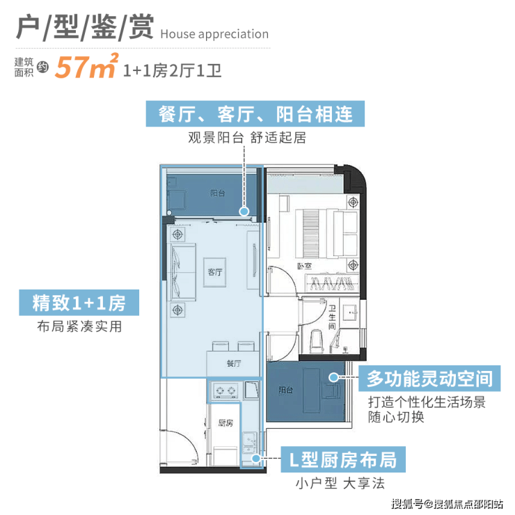 项目在售约57-72㎡的小户型产品,设计打破面积限制,让每一平米都发挥最大价值,即便是“小户型“,也能实现“大生活”。