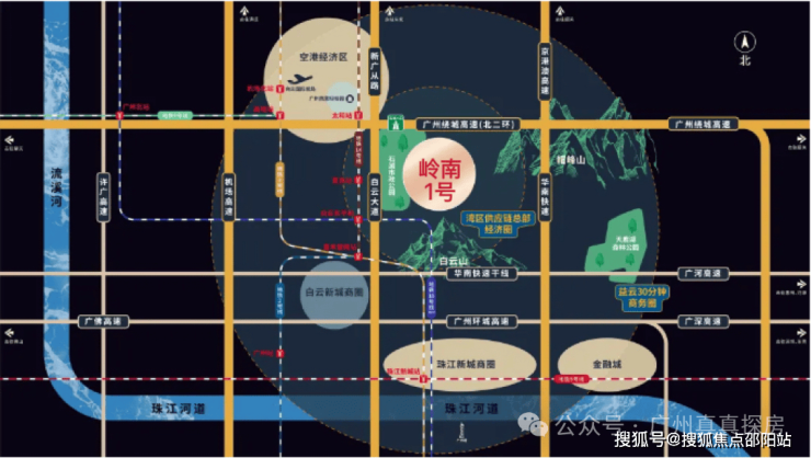 岭南1号位于六片山,在广州新中轴的北端,既享有城市的繁华,又根植于美好的自然生态。距离地铁十四号线东平站1.6公里,靠近北二环高速公路、新广从公路、北太路、106国道等高快速路和主干道,距离白云新城仅约5公里,距离天河仅约10公里,恰好契合了当代精英阶层"既要便捷又要静谧"的生活追求。
