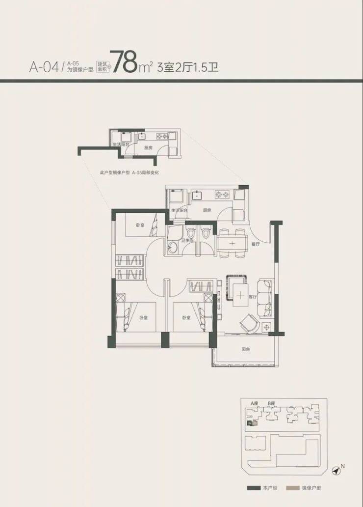 78㎡能做到三房+1.5卫+双阳台,功能性已经可以吊打科技园100㎡的新房。户型设计比较方正,1.5设计比较人性化,毕竟若三四口之家居住,多个马桶生活质素会提高很多。