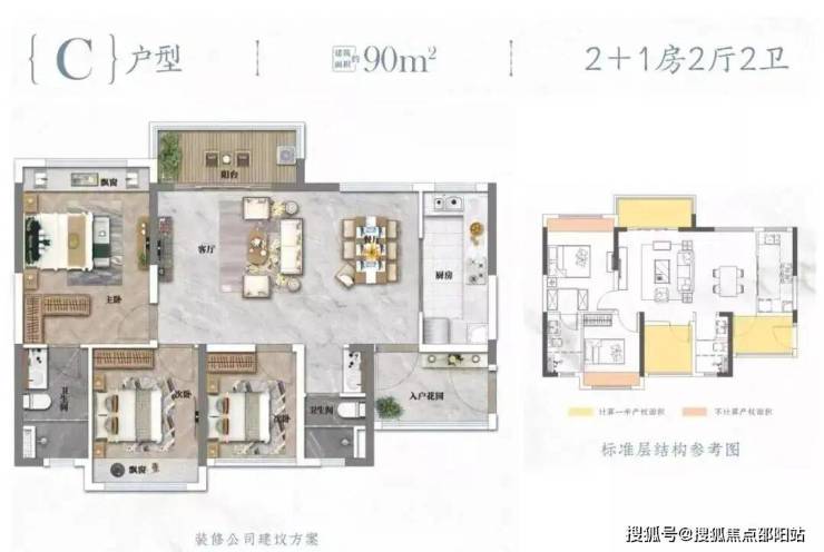 同时也采用了N+1的设计,赠送面积高达10㎡,小户型也能有大空间的感受。