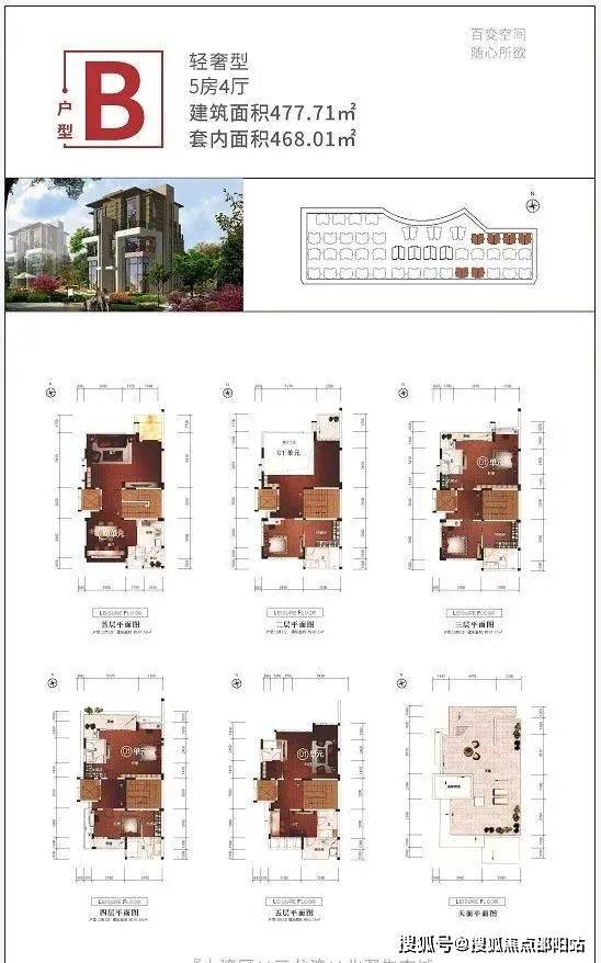 由88套,建筑面积477㎡——677㎡真双拼稀缺美墅组成