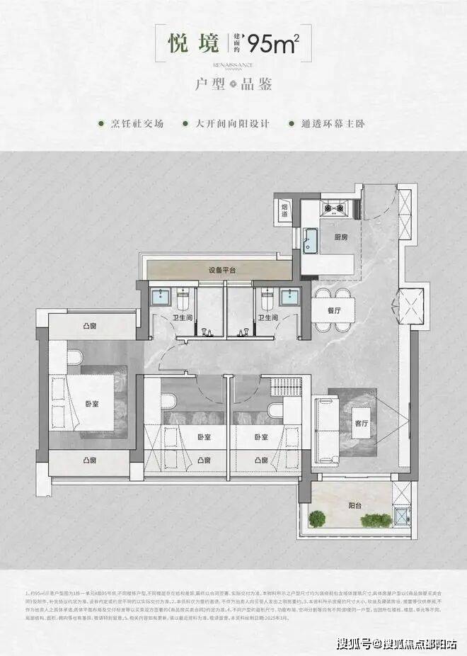 95㎡三房两卫:布局合理,采光良好,实用性强。