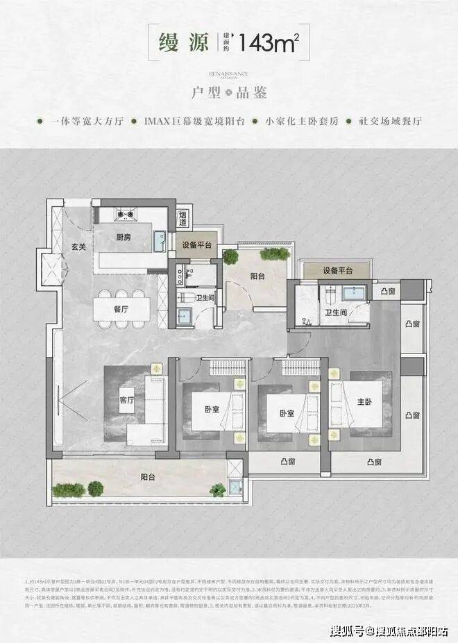 01号房,143㎡4房2卫,单价约:7.9-9.3万,总价约:1137-1338万