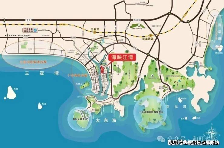 便捷交通:海映江湾项目位于河东路,北接迎宾路、南临鸿洲游艇码头,地处解放路与凤凰路之间。项目距三亚湾直线1.3公里,车程约6分钟可达三亚汽车站(约1.4公里),约13分钟至大东海旅游区(5公里),37分钟抵凤凰机场(14公里),40分钟达海棠湾(26公里)