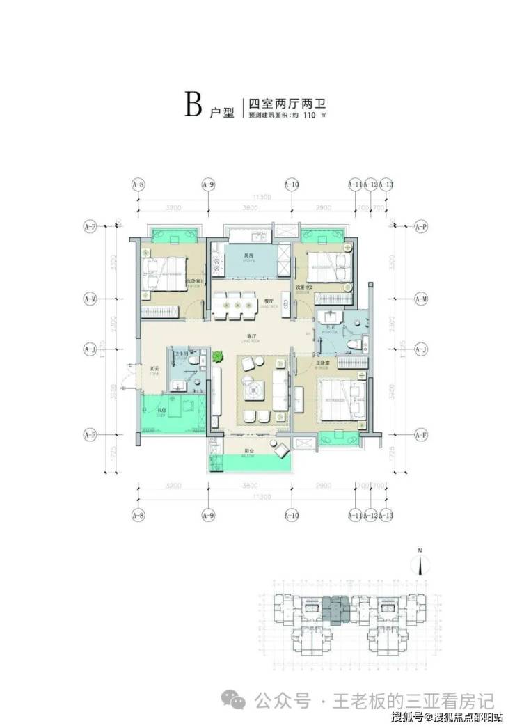 B户型建筑面积:110㎡赠送面积:13.16㎡户型设计:四房两厅两卫