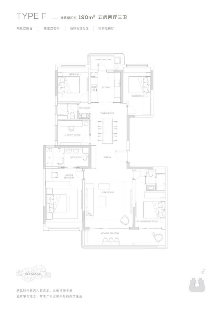 【190㎡双阳台户型】观景双阳台-高定双套间-私家电梯厅-双洄游动线