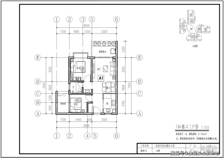 1#号楼A1户型61.86㎡(两房两厅一卫)