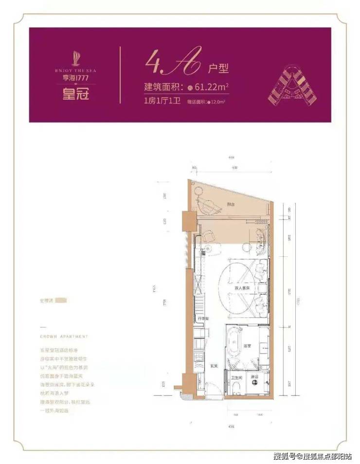 4B户型建筑面积约61.97㎡1房1厅1卫 赠送面积约12.6㎡