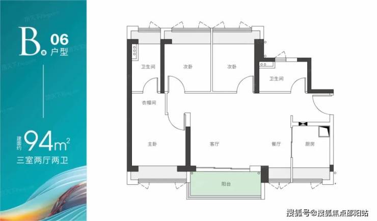 比如建面约93平的3房2厅2卫,三开间朝南,通风采光极佳,而且客餐厅为一体化设计,尽量做到了空间零浪费。