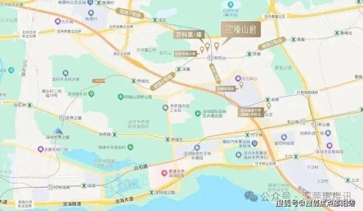 🔹纵横繁华 浅隐自然项目所在香蜜湖片区,周边倚靠安托山、塘朗山,与香蜜湖为邻,公园环簇安托山博物公园、梅林山公园、香蜜公园、园博园、儿童公园、燕晗山公园等。以两山一湖六公园的生态格局,拥揽城市绿肺。