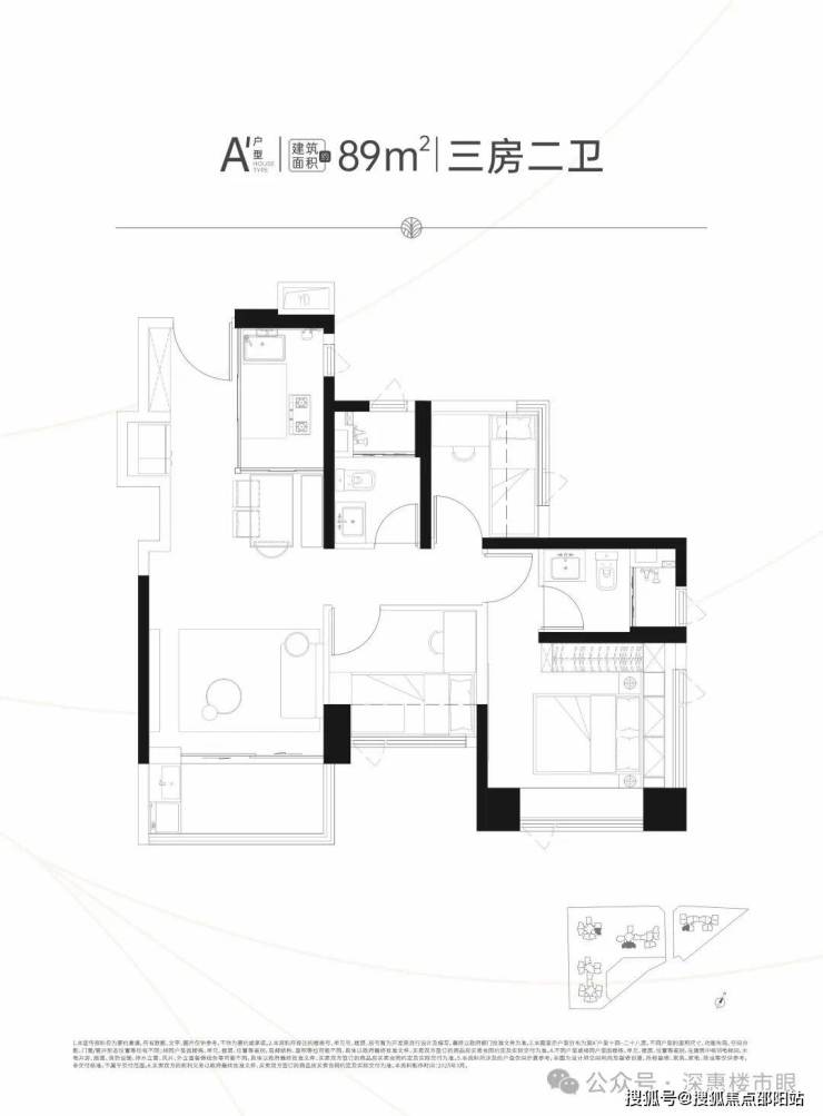 89㎡的3房2厅2卫,折后总价207-242万/套,折后单价2.34-2.72万/㎡。