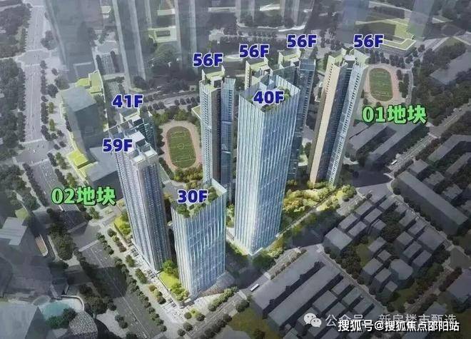 01-02地块,总占地面积约1.23万㎡,总建筑面积约15.08万㎡,计容建筑面积约10.85万㎡,容积率8.31,绿化率40.01%,共由2栋41-59F高的住宅组成,其中3栋住宅41F,4栋公共租赁住房59F,5栋办公楼30F,2栋是1所9班制幼儿园。
