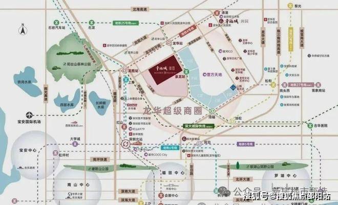 项目占位龙华超级商圈几何正芯,龙华商业中心城市更新北片区,傲踞天赋C位地块。