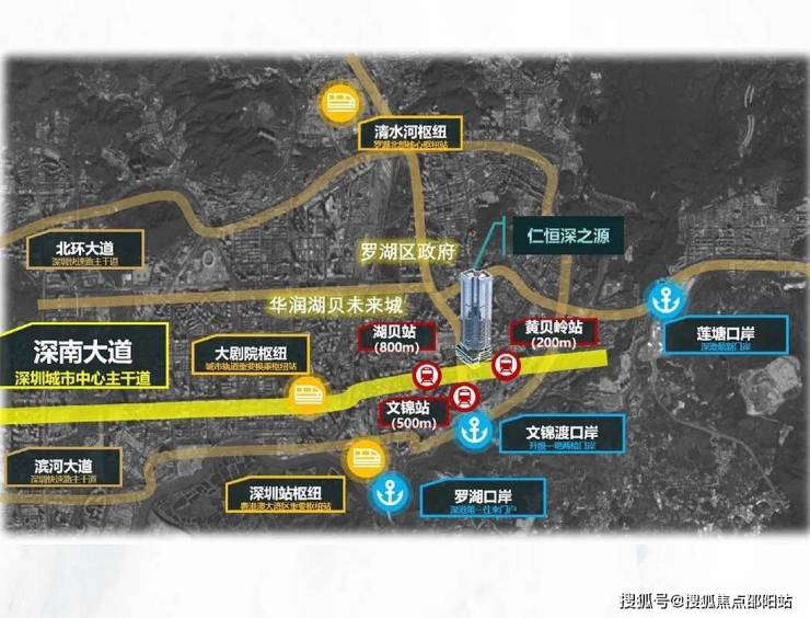 交通配套;2/5号线黄贝岭站、3号线晒布站、9号线文锦站、在建5号线西延线东门路站、家门口25号线罗湖区委站(规划中):罗湖口岸、文锦渡口岸、莲塘口岸:深圳站枢纽、清水河枢纽