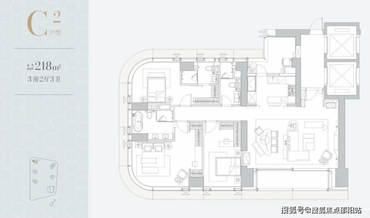 产品定位与品质的极致化项目全系纯大平层设计,无7090政策限制,首推房源均为302㎡以上的大户型,梯户比优越(302㎡户型3梯2户,370㎡户型5梯2户),搭配270°景观阳台、客厅转角无柱设计等顶豪配置。