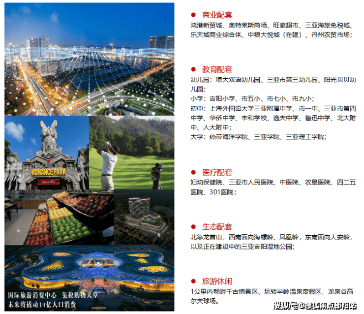 【交通价值】三位一体,便利交通陆:雄踞迎宾路、G98环岛高速主干道,30分钟车程轻松到达各大湾区,通达全岛各大城市路:约8公里到达三亚高铁站,约5公里达亚龙湾动车站,高效出行空:距离三亚凤凰国际机场16公里
